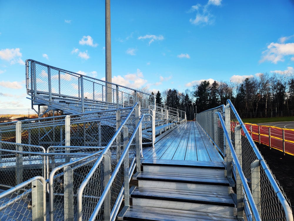 In this particular project, our team went the extra mile to assist in designing the concrete pad that needed to be poured beneath the bleacher by a local contractor. In a true team effort, our team not only designed this new bleacher, but also installed it on a timeline and without issue for our partners at the board.