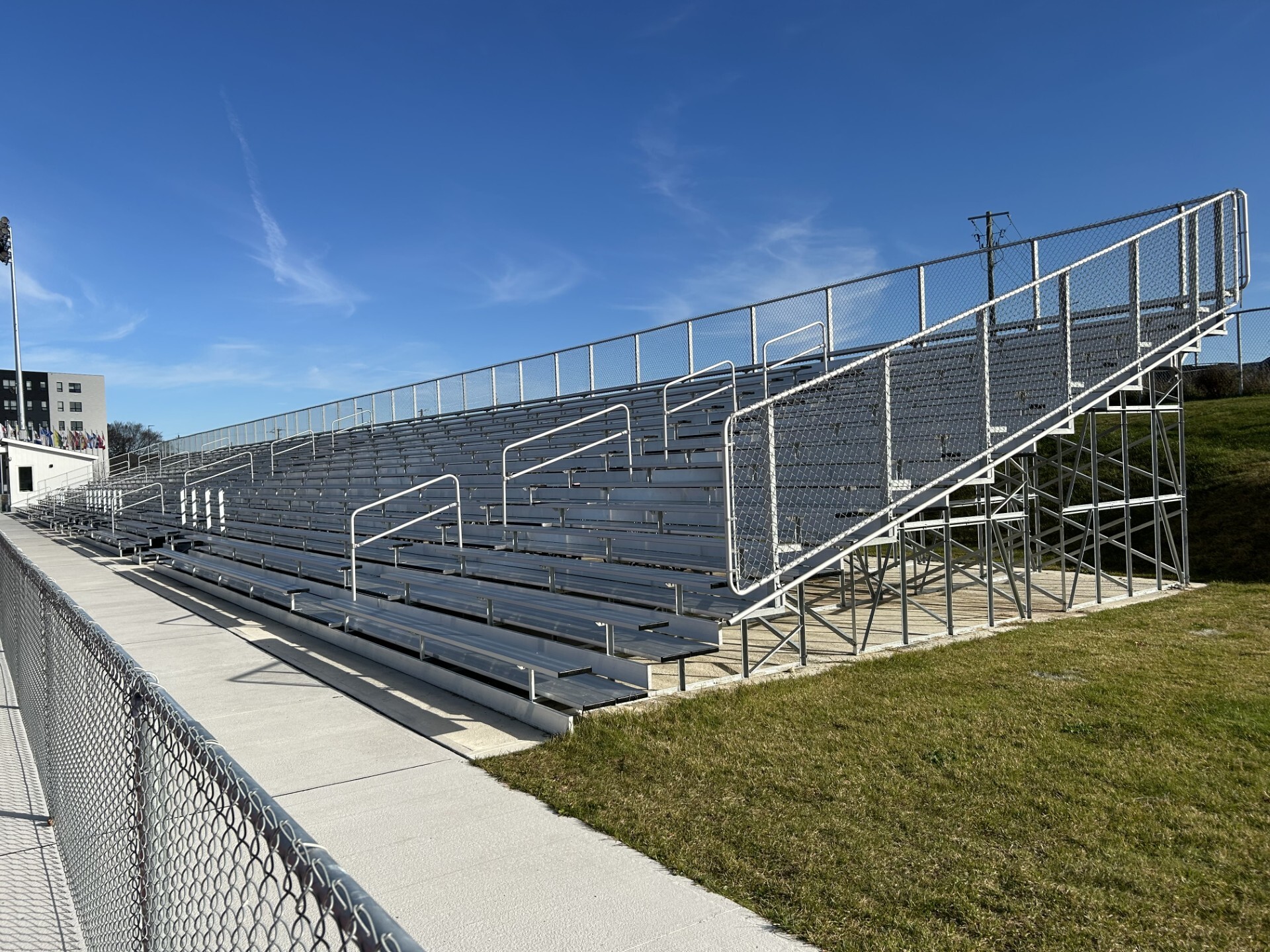 Every component was precision-manufactured at our Canadian facilities before being shipped to St. John’s. The Coastline Specialties team handled on-site assembly with exceptional skill, working under the open Atlantic sky. Their final update to our team confirmed what the photos so dramatically showed: the new bleachers turned out beautifully.