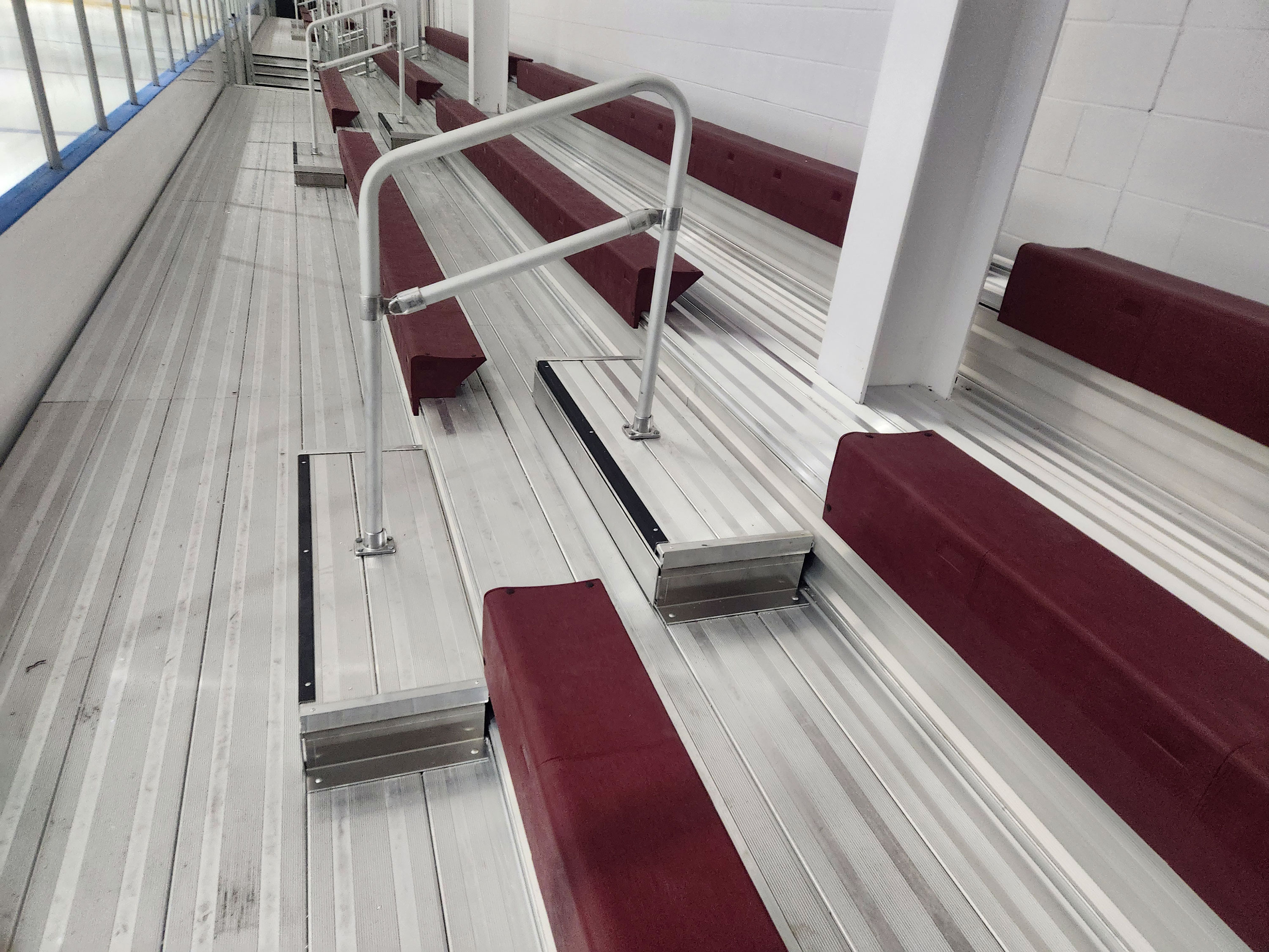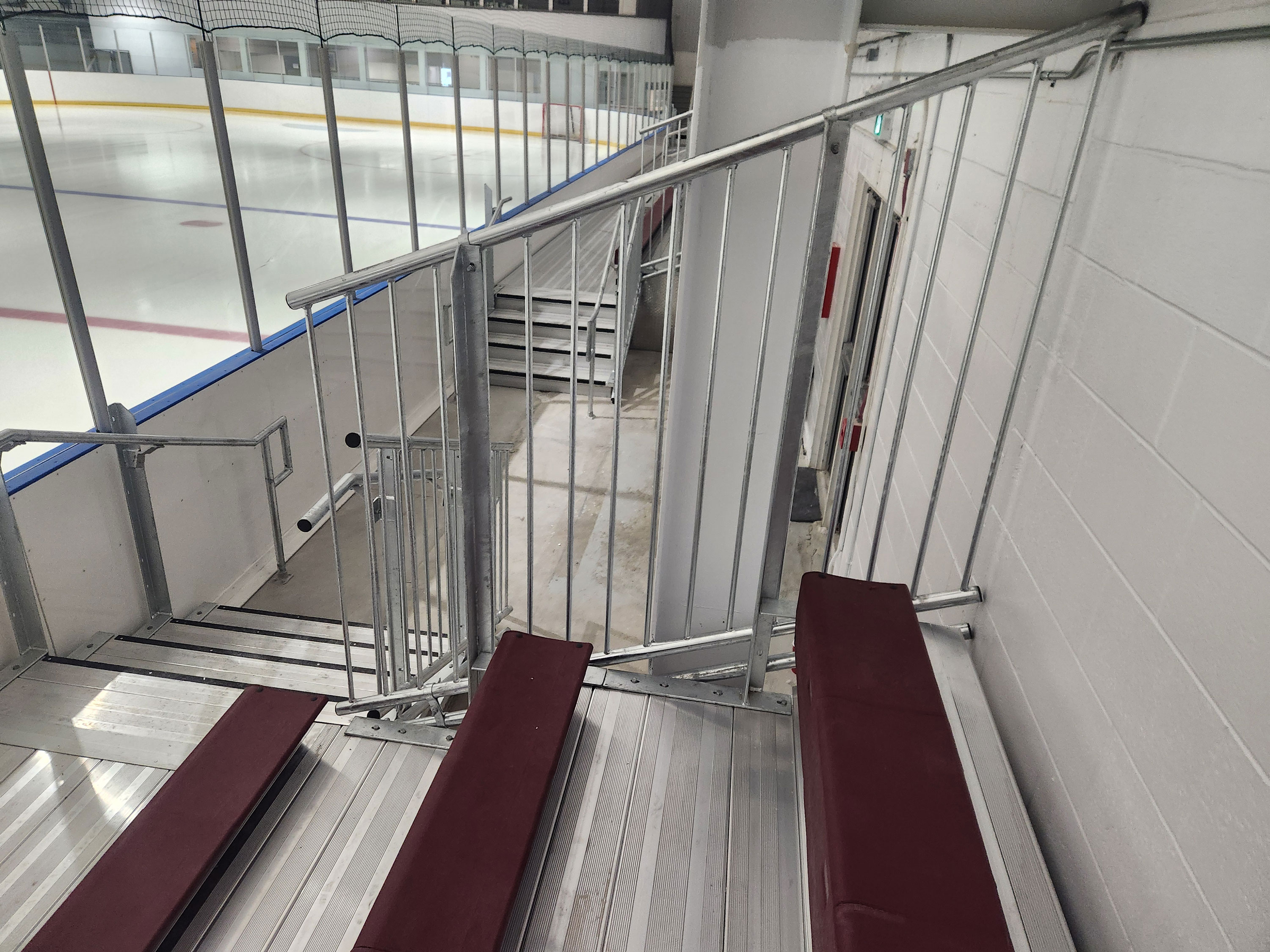 In the late summer months of 2025, our partners at Ball Construction reached out to our sales team. They were deep into a major renovation of the rink and as the work progressed, it became clear that the existing old wooden bleachers were no longer viable. Given their age, they could no longer meet modern safety standards, accessibility requirements, or integrate with the updated facility plans.