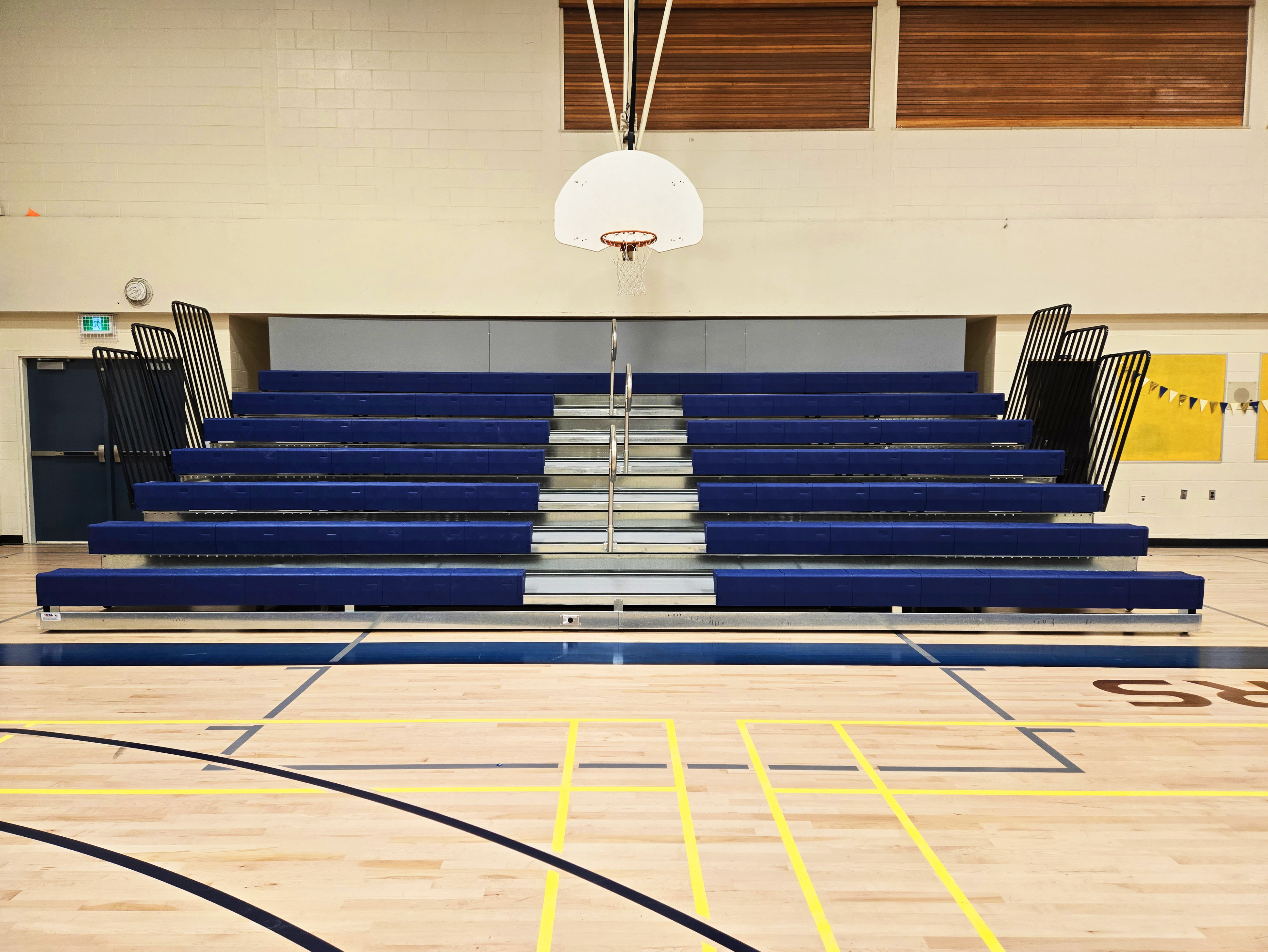 During some routine inspections that took place last year, the school’s original wooden bleachers were deemed unsafe and were officially condemned. School board facilities staff made the tough but necessary call to decommission and remove the old seating, leaving the gymnasium without any spectator bleachers for games, assemblies, and events.