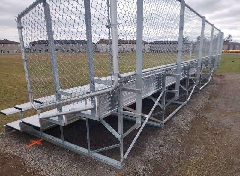 Earlier this year, St. Joseph’s reached out to our sales team to address concerns with their two aging, non-code-compliant bleachers. The existing three-row bleachers, equipped with a single footboard and no riser planks, posed safety risks and faced potential condemnation. The school sought a solution that would meet Ontario’s safety and building code standards while staying within their budget. Following a thorough on-site assessment, we proposed replacing the old bleachers with a single, state-of-the-art Gold Model BL-5TB-30, a 30-foot-long, five-row bleacher designed to seat 100 people comfortably.