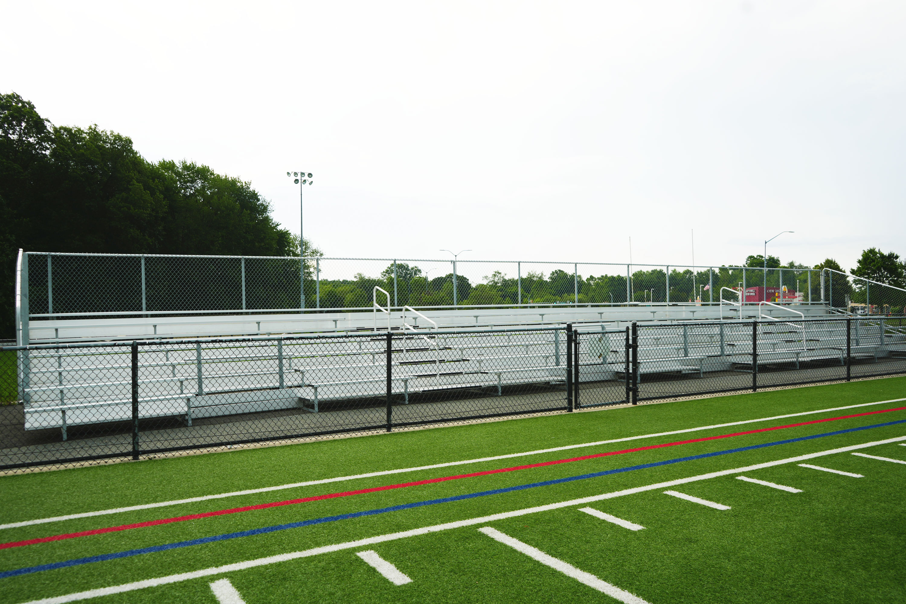 Tucker Field presented unique site constraints that called for innovative design solutions. Our expert team crafted three custom 7-row aluminum bleachers, all of which are fully ADA-compliant to ensure accessibility for all spectators. With the first bleacher measuring 40 feet in length, the second at 58 feet, and the third at 76 feet, these structures provide 705 total seats, including 16 dedicated ADA seating notch-outs for enhanced accessibility. Engineered for outdoor durability, the bleachers feature our signature quality including weather-resistant materials, easy maintenance, and spectator comfort in mind.