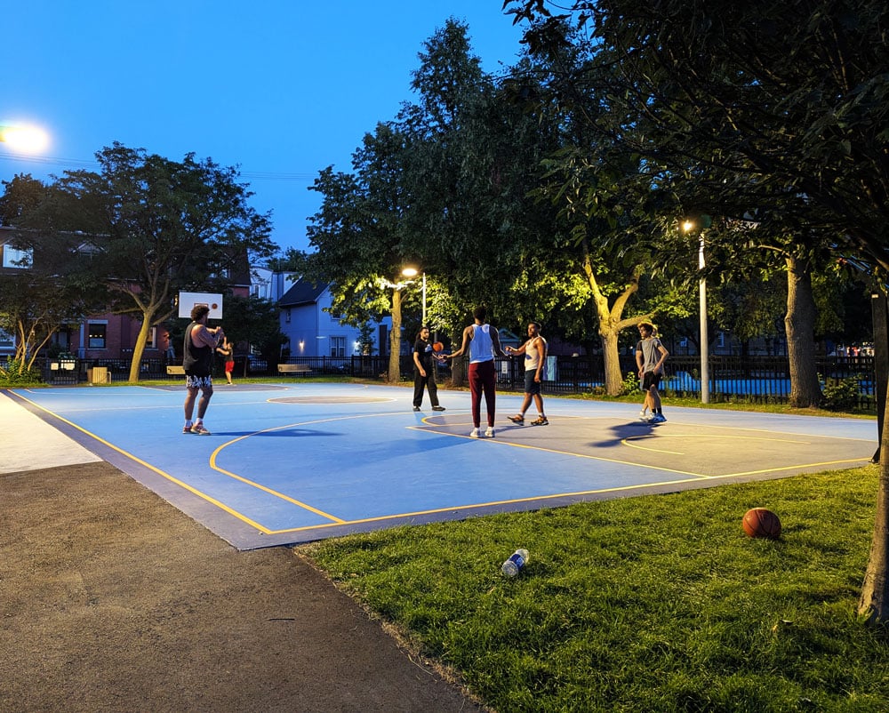 Among the requested upgrades made by the community, included the pruning of trees, a new surface treatment for the courts, additional lighting for late-night play, adjustable systems for all levels of play and break-away rims for long-lasting play.