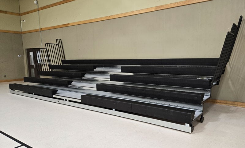 After assessing their needs, our team designed and installed a five-row, 26’ long retractable bleacher system that will now seat upwards of 73 spectators comfortably.