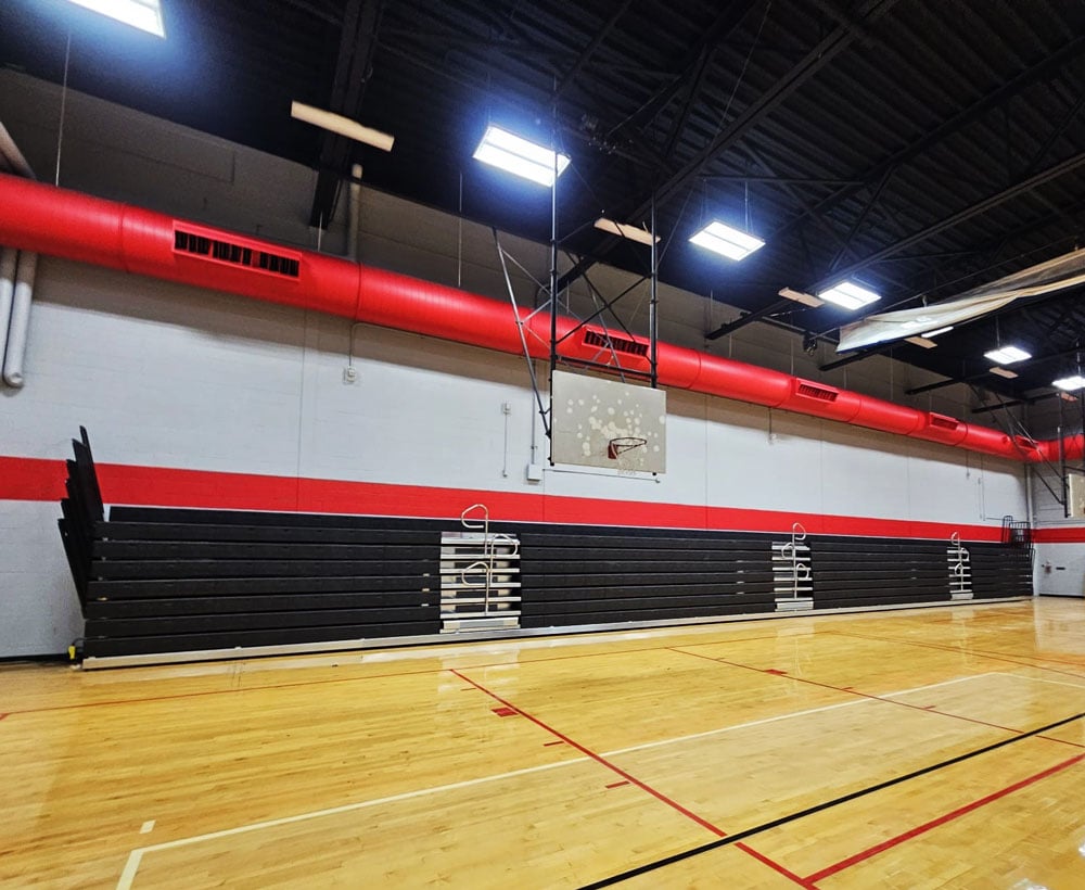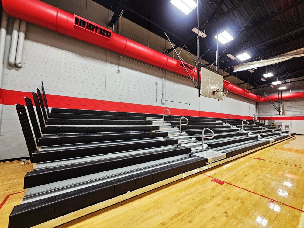Located in Lake County, Indiana and as an extension of the greater Chicago metropolitan area, we were brought into an exciting project by Lake Ridge Schools. Looking for some improved seating for the Lake Ridge New Tech School, key stakeholders from the school district reached out to our team looking for a few banks of our telescopic bleacher seating units for their gymnasium.